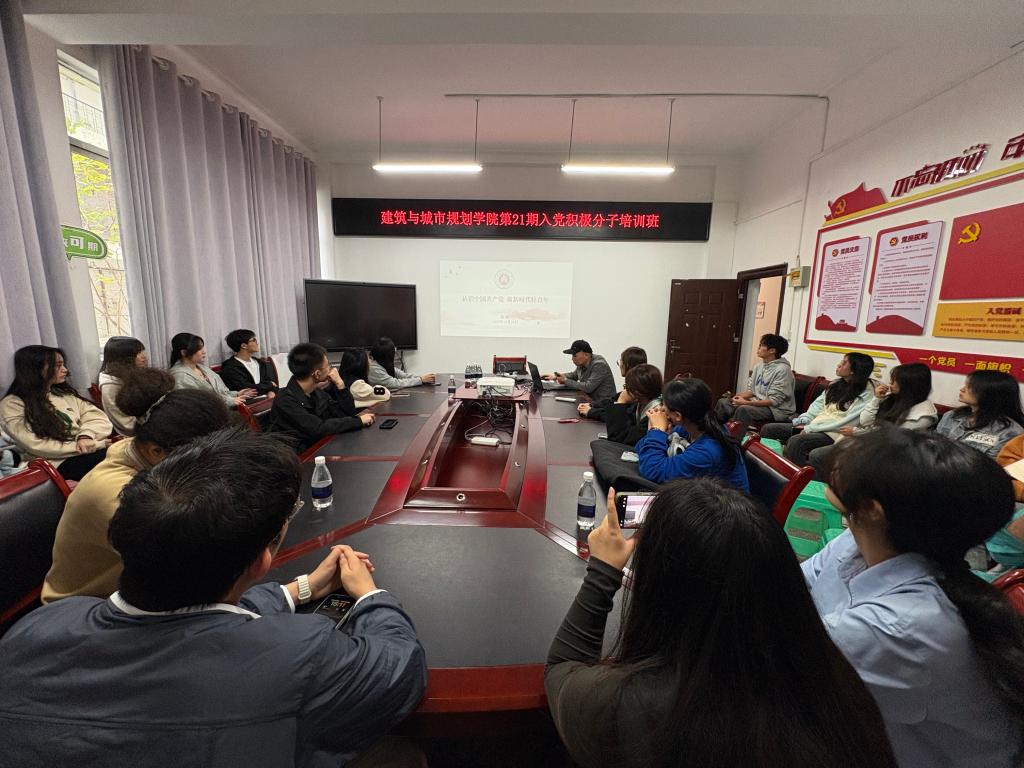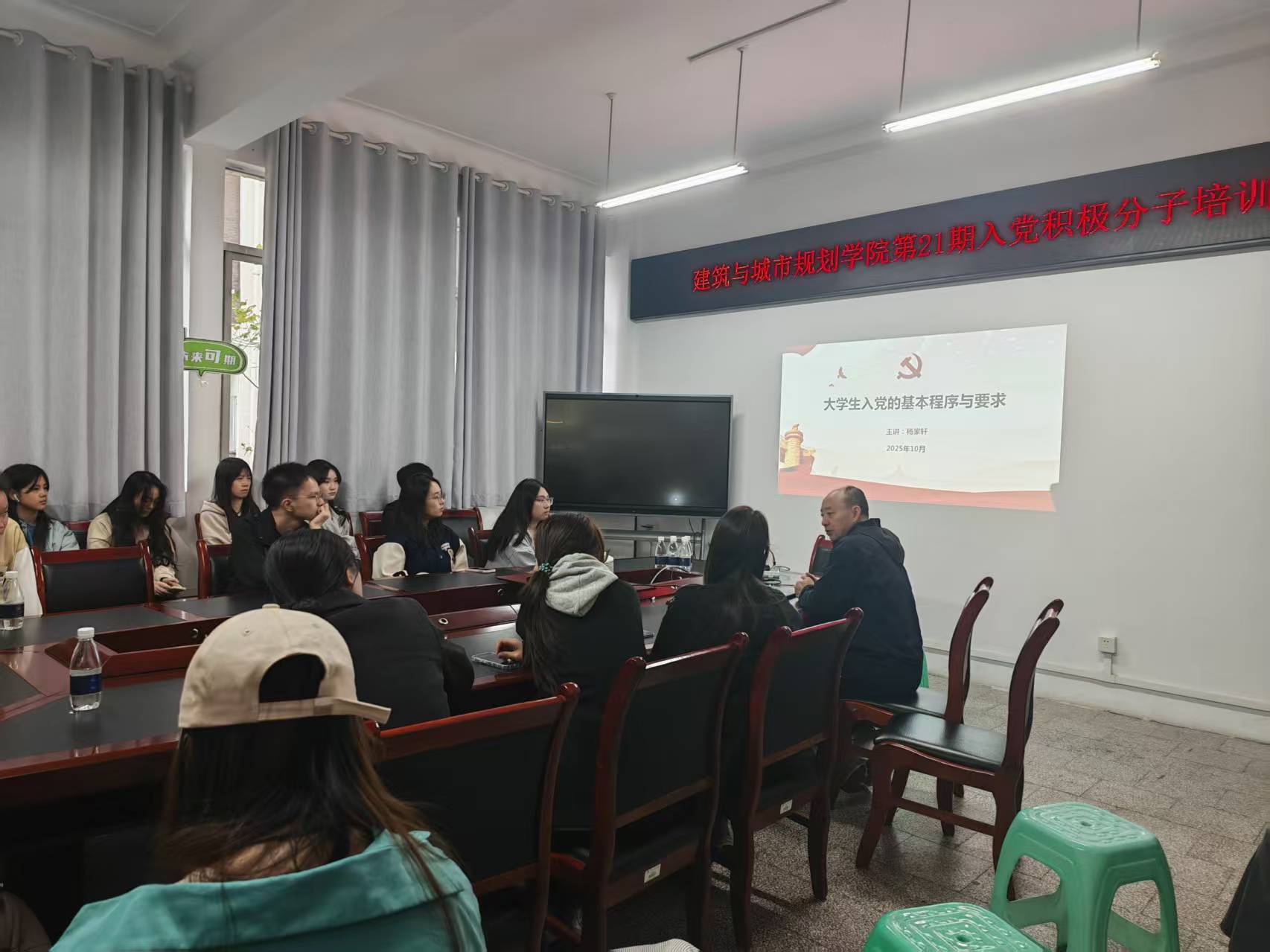 为加强入党积极分子培养教育,筑牢理想信念根基,10月24日下午,建筑与城市规划学院组织开展第21期入党积极分子培训班线下集中授课,正式拉开本期培训序幕。助力入党积极分子在思想淬炼与理论学习中锤炼先锋品格。