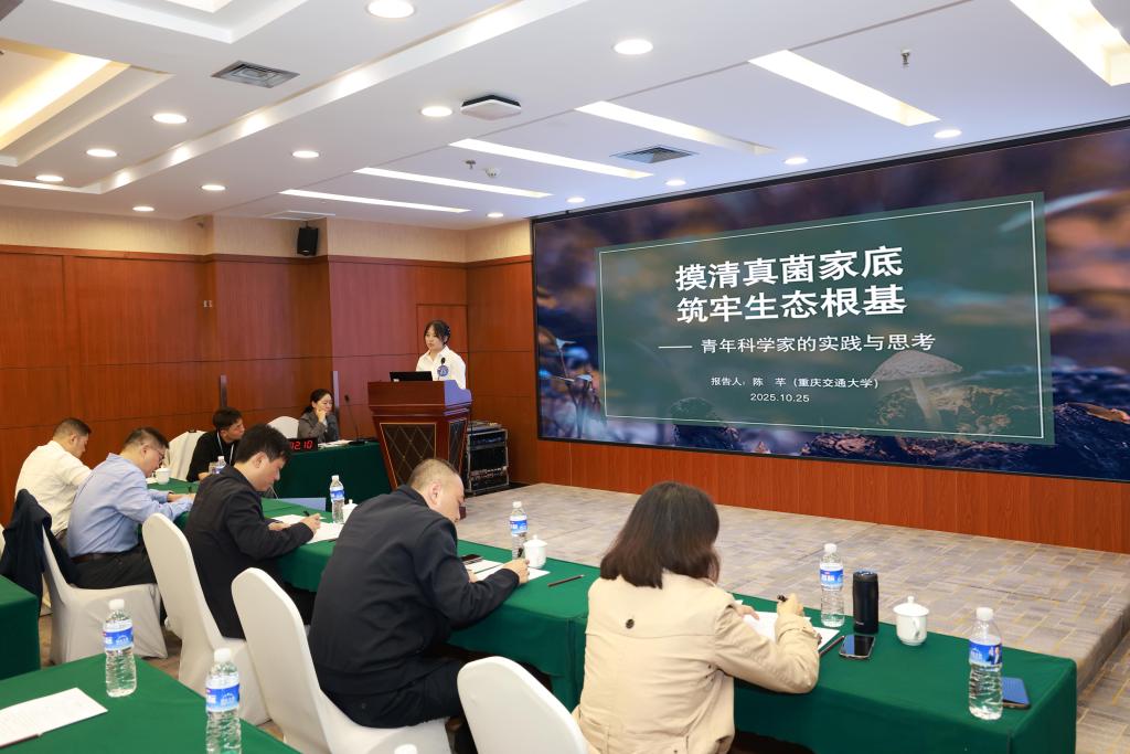 在决赛环节,陈芊副教授以《摸清真菌家底,筑牢生态根基——青年科技工作者的实践与思考》为题,系统展示了其在生物多样性研究与生态保护领域取得的创新性突破。她立足国家生物安全与生态文明建设的战略高度,以独特的跨学科视角,深入阐释了基础科学研究在推动科技创新、服务社会发展中的核心价值。通过分享扎根科研一线的实践探索,生动展现了青年科技工作者将个人理想融入国家发展大局的责任担当,其精彩的演讲内容和深厚的学术造诣赢得了评审专家的一致好评。