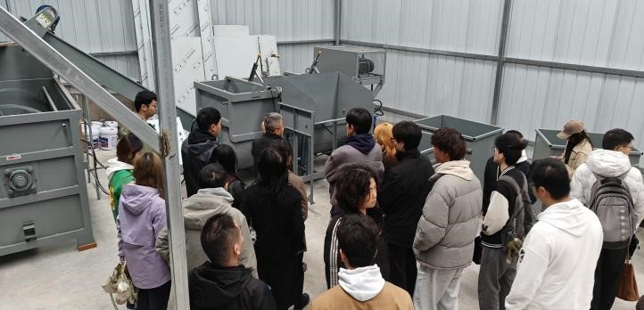 同学们走进林菌研究中心,中心主任王伟详细介绍了食用菌生产的各个环节,同学们实地了解了“菌包生产+生态循环”创新模式,实现了“松材疫木—菌包—虫肥”的三物循环。本科生李同学表示:“我第一次意识到蘑菇也能运用到景观设计里,也是第一意识到‘废物’在生态系统中可以成为资源。”