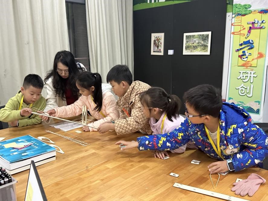 在建规学院的志愿者的引导下,他们参观“长江国家文化公园科普展”,动手体验吊脚楼模型搭建,并合作完成东水门大桥与红岩村大桥的拼装任务,感受重庆“桥都”魅力。