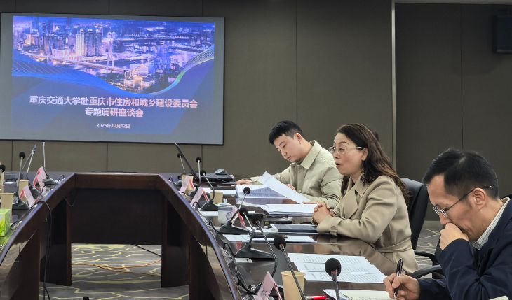 2025年12月12日上午,重庆交通大学与重庆市住房和城乡建设委员会校地合作专题调研座谈会在市住建委举行。重庆交通大学纪委书记、监察专员李晓珂率队,建筑与城市规划学院党委书记吴科、院长董莉莉及党政班子成员、教师代表一行共9人参与座谈。市住建委党组成员、副主任席红,总工程师王慎川携城市更新处、设计与绿色建筑发展处、城市提升统筹处、科技外事处、村镇建设处等业务处室负责人共7人出席会议。市住建委针对我校提出的建筑学科专业转型升级的诸多问题给予了详细的解答,并围绕城市建设与产业协同、学科专业建设与人才培养、校地合作机制构建等议题展开深入交流。