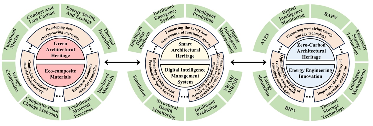 本研究基于2004-2025年在WOS数据库收录的研究成果,综合分析了建筑遗产中可再生能源技术集成应用的主题变迁及热点问题,通过解析建筑遗产保护利用的特殊性,厘清并提出了可再生能源在建筑遗产中的技术集成应用准则和策略,进而梳理了可再生能源在建筑遗产领域的技术集成应用研究脉络,深度探讨了太阳能、地热能、风能及多元综合可再生能源技术在促进建筑遗产提能降碳和绿色舒适方面的潜力以及其对于建筑遗产的适用性,从而研判可再生能源在建筑遗产中的技术拓新、复合材料和数智管理这三个技术集成应用方面的前沿趋势与未来挑战。研究结果表明:以原真性为“第一性”原则,以不破坏遗产本体及其建成环境为前提,采用“安装-拆解”可逆性技术设施,遵循形式“协调性”原则、环境“最小干预”原则、材料“可识别性”原则和技术“可逆性”原则,从而实现可再生能源的高效技术集成应用,最终构建绿色、零碳、智慧并存的建筑遗产空间,寻求协同建筑遗产本体保护传承与减碳节能改造利用的综合解决方案,是未来建筑遗产中可再生能源可持续技术集成应用的战略与挑战,亦是未来学界研究的重要问题。研究旨在为实现建筑遗产本体保护传承与减碳节能利用的协同提供关键技术支撑,为全球“双碳”目标驱动下国际建筑遗产节能降碳技术领域研究提供指南,助推建筑遗产的可持续发展。